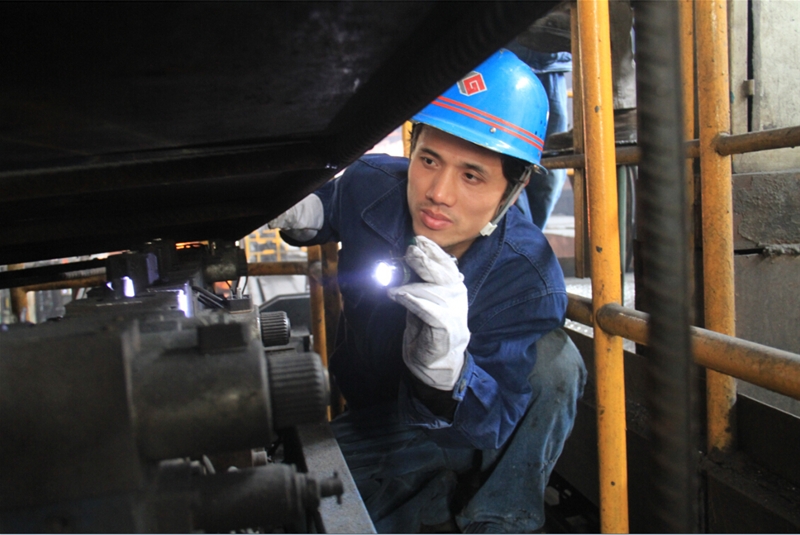 7月份廠房內(nèi)的溫度就像一個(gè)火爐一樣炙熱,設(shè)備溫度達(dá)到了200度。中午1點(diǎn)10分,正在午休的陳超突然被一陣電話鈴聲吵醒,他接到班長的電話:5#機(jī)拉矯機(jī)輥不轉(zhuǎn)了,需要在線更換!接到電話的他立即從學(xué)習(xí)室凳子上起來,馬不停蹄地趕往生產(chǎn)現(xiàn)場!10分鐘過去了,只見他拿著手電筒紋絲不動(dòng)的盯著出問題的拉矯輥,臉也被已烤得通紅,汗水剛一落地就瞬間變成了蒸汽!讓我來吧,陳超接過小劉手中的扳手,直接扎進(jìn)了拉矯機(jī)下面。3分鐘后,只見他渾身濕淋淋的從拉矯機(jī)下面鉆了出來,汗水已經(jīng)讓他的雙眼無法睜開,可就在這時(shí),班長急匆匆的趕了過來,說6#機(jī)振動(dòng)減速機(jī)立板出現(xiàn)故障,話音剛落就不見了他的身影,只見他喝了口水就直接奔向了6#機(jī)二冷室,旁邊的小郭喃喃自語到,超哥真是個(gè)鐵人啊!搶修一直持續(xù)到8點(diǎn),7個(gè)多小時(shí)的連續(xù)作業(yè)使他身心疲憊,從二冷室出來的那一刻他身上的衣服早已浸透,但他沒有任何怨言,只是靜靜坐在墻角眼睛盯著操作臺,直到順利開澆,他才默默的離開現(xiàn)場……