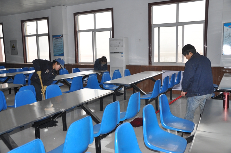 此次清潔活動,主要對新區(qū)食堂灶具、餐桌、墻面、地板進(jìn)行全面清潔,放置就餐所用餐具,并協(xié)助食堂經(jīng)營人員完善電路、下水試運行工作。在清潔現(xiàn)場,大家有的正用力清除不銹鋼桌面上的膠布、有的揮動著掃把清掃垃圾、有的站在高空擦拭著玻璃……分工協(xié)作,默契配合,干得不亦樂乎。在搬運、擺放灶具、清理雜物的過程中,大冬天汗水順著職工臉頰不斷流淌,而他們卻毫無怨言,還不時的你一句、他一句的相互攀談著,規(guī)劃著食堂將來的飯菜如何,是否會符合自己口味。