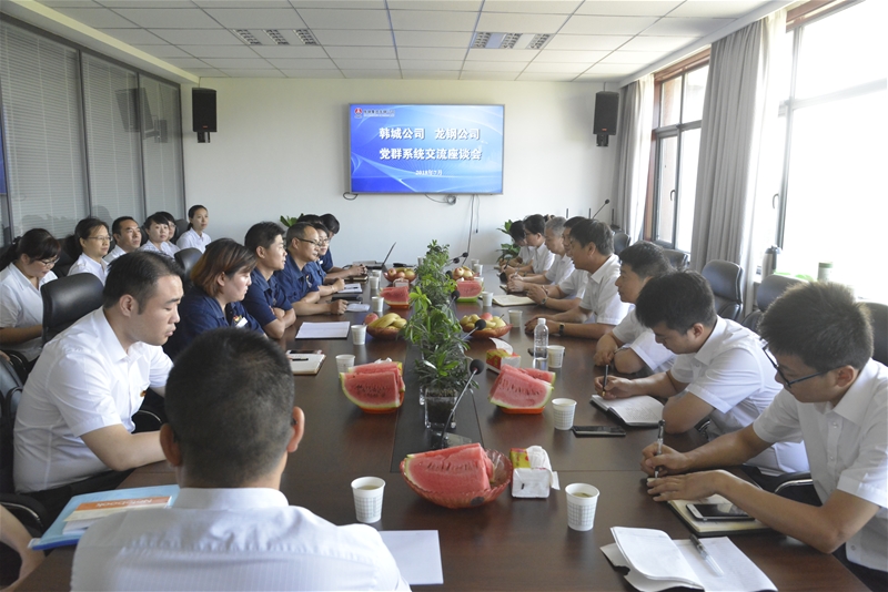 7月25日,韓城公司黨委書記、副董事長趙林,黨委副書記李紅斌帶領(lǐng)黨群系統(tǒng)相關(guān)工作人員來龍鋼公司就黨群、工會、紀(jì)委工作進(jìn)行業(yè)務(wù)交流。龍鋼公司黨委書記郗九生,黨群工作部、工會辦、審計(jì)監(jiān)察部相關(guān)人員與韓城公司黨群系統(tǒng)進(jìn)行了一次深入的溝通和業(yè)務(wù)交流。