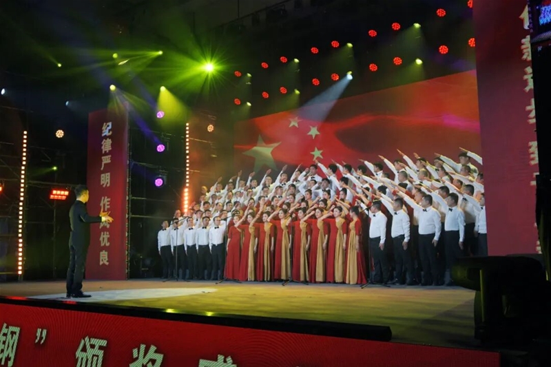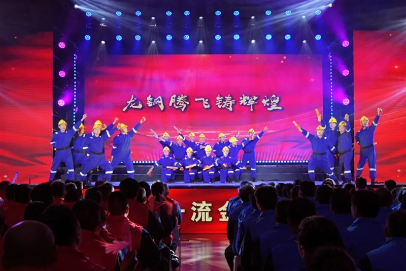 主題鮮明、具有龍鋼特色的文藝節(jié)目與頒獎(jiǎng)環(huán)節(jié)穿插進(jìn)行,為盛典增添了濃厚的文化氛圍。歌曲《鋼鐵脊梁》唱出龍鋼人的責(zé)任擔(dān)當(dāng),歌伴舞《向光而行》傳遞奮進(jìn)力量,音舞快板《我們的答卷》回眸了不平凡的2025年,情景舞蹈《愛(ài)的篇章》詮釋了龍鋼人的大愛(ài)情懷,情景劇《榮光!致敬煉鋼三十年》展現(xiàn)了煉鋼三十年的奮斗歷程和文化傳承,配樂(lè)詩(shī)朗誦《“四維龍鋼”耀光芒》深情回望龍鋼人逐夢(mèng)“四維龍鋼”的十三年征程;歌舞《讓世界充滿愛(ài)》傳遞了十里鋼城的感動(dòng)力量;歌曲聯(lián)唱《龍鋼之歌》《擁抱太陽(yáng)》《祖國(guó)不會(huì)忘記》以磅礴氣勢(shì)收尾,唱出了全體龍鋼人的初心與信仰。