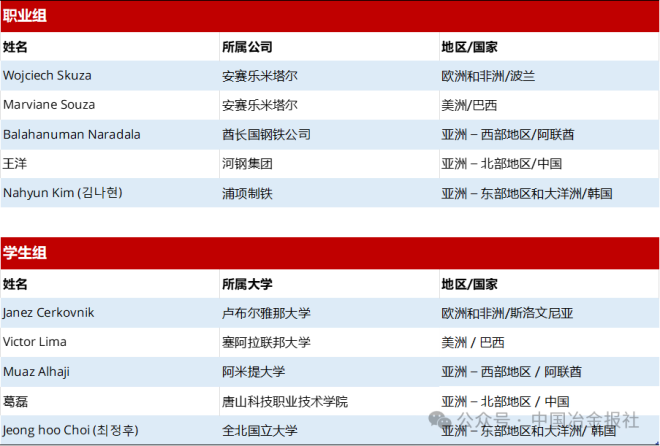 第20屆模擬煉鋼挑戰(zhàn)賽世界冠軍總決賽入圍名單: