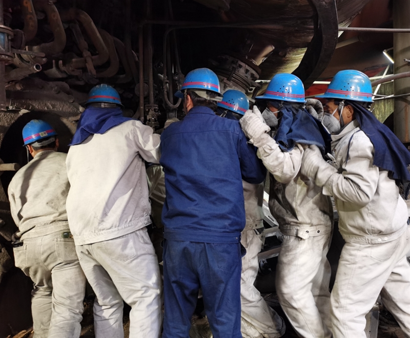12日早晨9點(diǎn)鐘,高爐風(fēng)口平臺(tái)上,溫度滾燙,但這絲毫不能阻擋參檢爐前工們奮進(jìn)的步伐。他們身著白色阻燃服,在熱浪拂面的14#風(fēng)口旁兩兩一組,精誠(chéng)團(tuán)結(jié)、合力攻堅(jiān),一人雙手緊握鋼釬,一人使出全身力氣揮舞鐵錘,正全神貫注清理風(fēng)口套里面的殘?jiān)?hellip;…