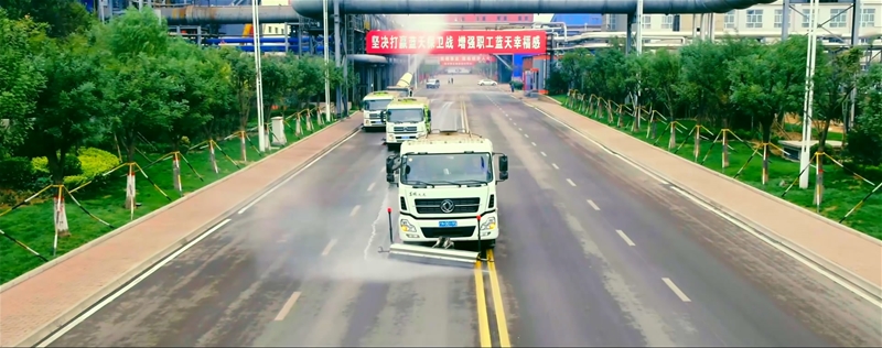在無組織排放治理方面,龍鋼公司通過建成40萬m2封閉料倉,使物料全部入倉,并在料倉內增設霧炮定期噴淋降塵,確保作業(yè)無揚塵;完成皮帶通廊、高爐出鐵場等重點部位密封,確保出鐵不見鐵、煙塵不外溢,運料不見料;并建成7套車輛清洗裝置,對進出廠區(qū)、料倉區(qū)域車輛進行沖洗,減少夾帶、杜絕揚塵;配備53輛專業(yè)清洗車、噴霧車對道路實施全天候清掃、清洗。同時在黃河大道北側增設智能化自動旋轉噴霧抑塵裝置,確保行車無揚塵、地面更潔凈。