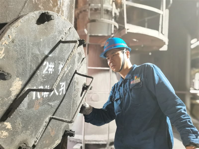 為確保較好的除塵效果,該單位加強(qiáng)設(shè)備鍋爐管、洗滌塔、除塵器、風(fēng)機(jī)等設(shè)備的維護(hù)頻率。每次檢修,薛小勇一刻也閑不住,一會(huì)在鍋爐18米平臺(tái),一會(huì)又到了24米平臺(tái),轉(zhuǎn)眼又會(huì)在30米平臺(tái)。在一次檢修中,薛小勇像往常一樣,第一個(gè)沖進(jìn)鍋爐管道里清理噴槍。只見(jiàn)他系著安全帶,踩著鋼架管,扛著高壓水槍?zhuān)炀毜剡x好角度之后就開(kāi)始清理噴槍上的泥垢,在高壓水槍的噴射下,噴槍上的泥垢紛紛落下。從鍋爐管里面出來(lái)后,薛小勇稍作休息,又趕到洗滌塔人孔處,開(kāi)始下一輪的清理工作。身邊的同事勸他休息一下,他卻說(shuō),“一定要在規(guī)定時(shí)間內(nèi)完成除塵系統(tǒng)檢修任務(wù),不能影響轉(zhuǎn)爐生產(chǎn),不能影響整個(gè)系統(tǒng)。”