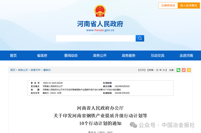 10月30日,河南省人民政府辦公廳發(fā)布了《關(guān)于印發(fā)河南省鋼鐵產(chǎn)業(yè)提質(zhì)升級行動計(jì)劃等10個(gè)行動計(jì)劃的通知》。