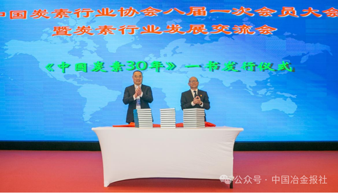 會上還舉行了《中國炭素30周年》一書的發(fā)行儀式,鞠自力和馬卓共同為新書揭幕。